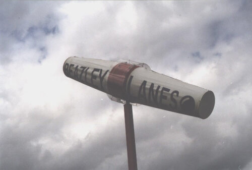 It was built to promote a local bowling alley. we're not sure of the dimensions, but it is quite huge!